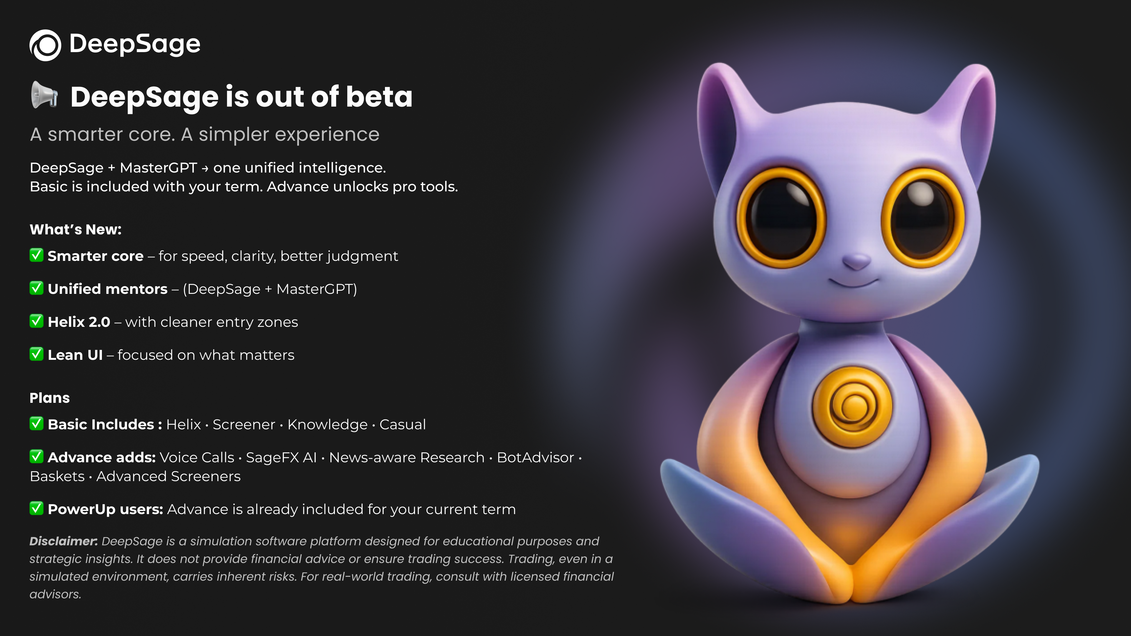 Añade DeepSage Advance para desbloquear voz, SageFX AI, investigación con noticias, BotAdvisor, baskets y screeners avanzados.