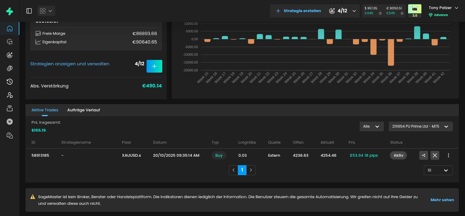 For example, if I have a longer negative period and the providers are positive for longer at the same time. Then I only see the very good performance of the providers in Sagemaster but not my negative performance.